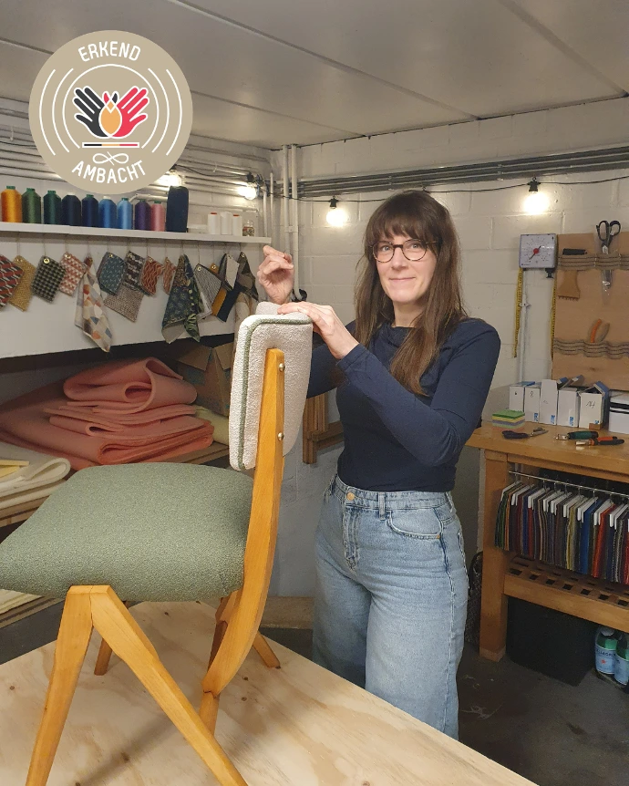Ik ben Sofie Van Caenegem, meubelstoffeerder en oprichter van Stofwerk. In mijn atelier in Zottegem werk ik aan (her)stofferingen voor zowel bestaand meubilair als nieuwe ontwerpen.